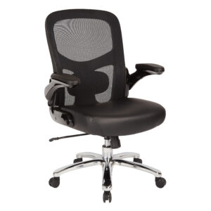 ProLine-Big and Tall Mesh Back Black Bonded Leather Executive Chair w/ adjustable flip arms. 400 lbs