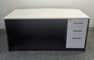 Buro- Bow Front single pedestal desk with box box file 60”w x 30/36”d x 29”h.
